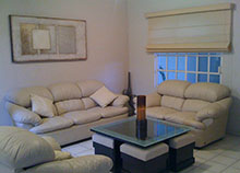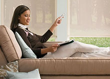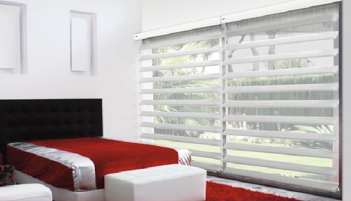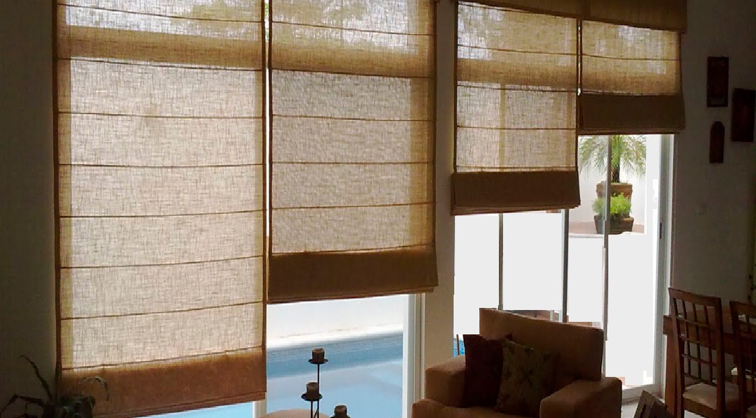 Combinación de persianas Romana, Sheer y Enrollable.